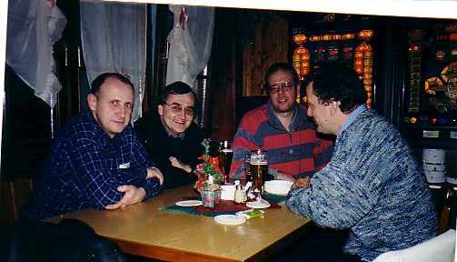 Hier eine außerordentliche Generalversammlung des SV Reichenbach (Ulrich Orth, Werner Riebel, Stephan Ziska und Roland Weitzel) bei TOP 1.A.: „Wie sind 2 Bier auf 4 Mann aufzuteilen.“ |