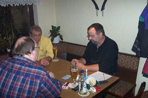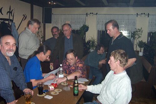 Skatwanderpokal Fürth 2002: Hier ein Photo des GMBZ am Ende des Turnieres mit Hodegi's Digital-Kamera mit PGS (=Promillegehalts-Sensor). |