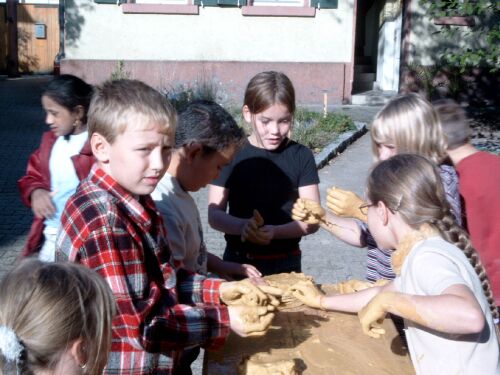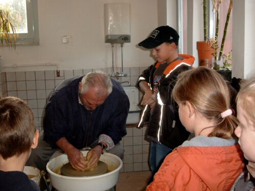 "Hoffnungslose handwerkliche Fälle sind mir ein besonderes Anliegen!" ... so der Töpfermeister Josef Bill vom Viernheimer Museum auf die Frage, ob er auch Schachspielern des Bezirks Bergstraße einen Töpferkurs geben könnte. Vielleicht lässt sich ja eine Gruppe zusammenstellen? Hier ein Bild mit fritznulls Klasse, die in ihrer kreativen Schöpfungskraft um Klassen besser gewesen sein dürften. |