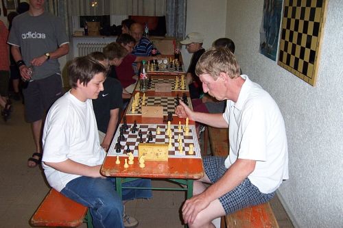 In bestechlicher Form erwies sich der GMBZ bei den Kreisjugend- Mannschaftsmeisterschaften 2003 in Fürth. So ließ er nicht nur die Bierflasche im vom Kreisturnierleiter gelEsterten Kühlschrank, sondern auch gegen den KMA (*) Andreas Degenhardt die Figuren auf dem Brett stehen. Als Leiter einer Ein-Mann-Halbstarken-Mannschaft machte er viel Federlesens, weshalb pädagogische Fachkräfte im dunklen Hintergrund lauerten. (*) Kreismeister-Anwärter |