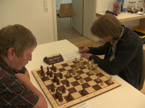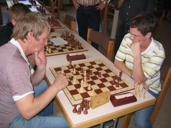 Blitzpartie zwischen Jan Schoppmeyer (SV Biblis; rechts) und GMBZ