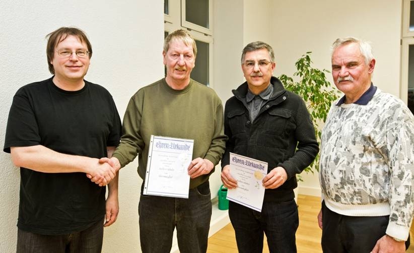 Der 1. Vorsitzende Ralf Mattusch gratuliert Herbert Schulz zu dessen